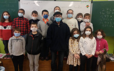 Jean-Claude Le Ruyet, écrivain et poète en langue bretonne, est venu rencontrer les élèves de la classe bilingue de cycle 3 (CM1-CM2) de l’école Sainte-Bernadette.